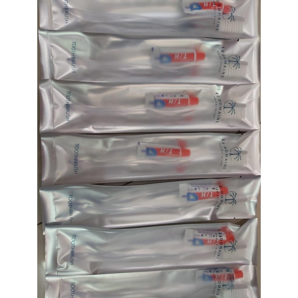 BÀN CHẢI THỦY TINH + KEM ĐỎ + TÚI NHUÔM + IN LOGO KHÁCH SẠN